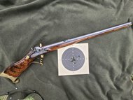 Original "Fanzoj" Vorderlader Scheibenstutzen, vermutlich aus Radschloss adaptiert, Cal. 54, m. Koffer u. allem notwendigen Zubehör, an Vorderladerschützen zu... (mehr)